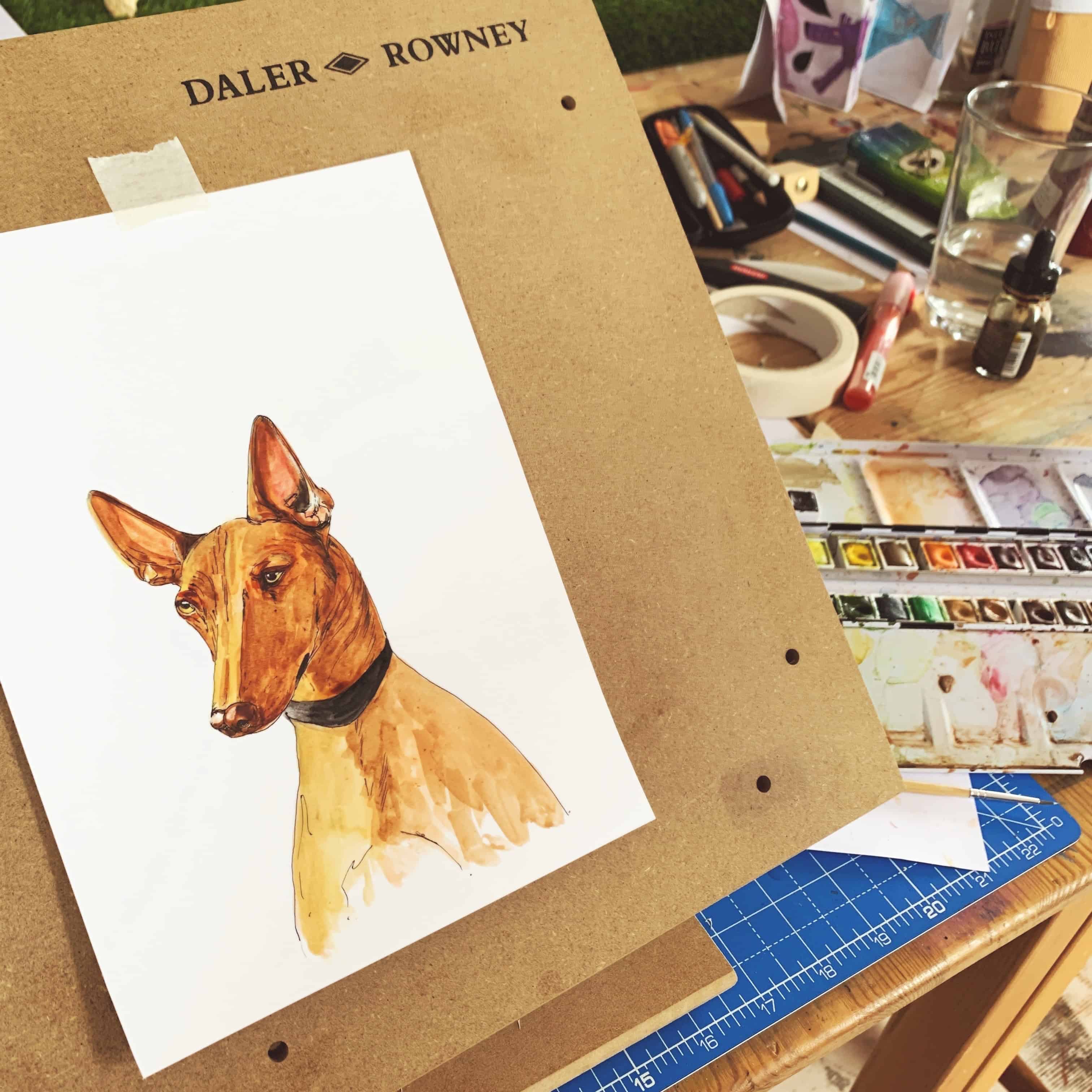 This original pen drawing measures 12 x 12cm and comes mounted ready to frame. The mount fits directly into an Ikea frame. (Frame not included)