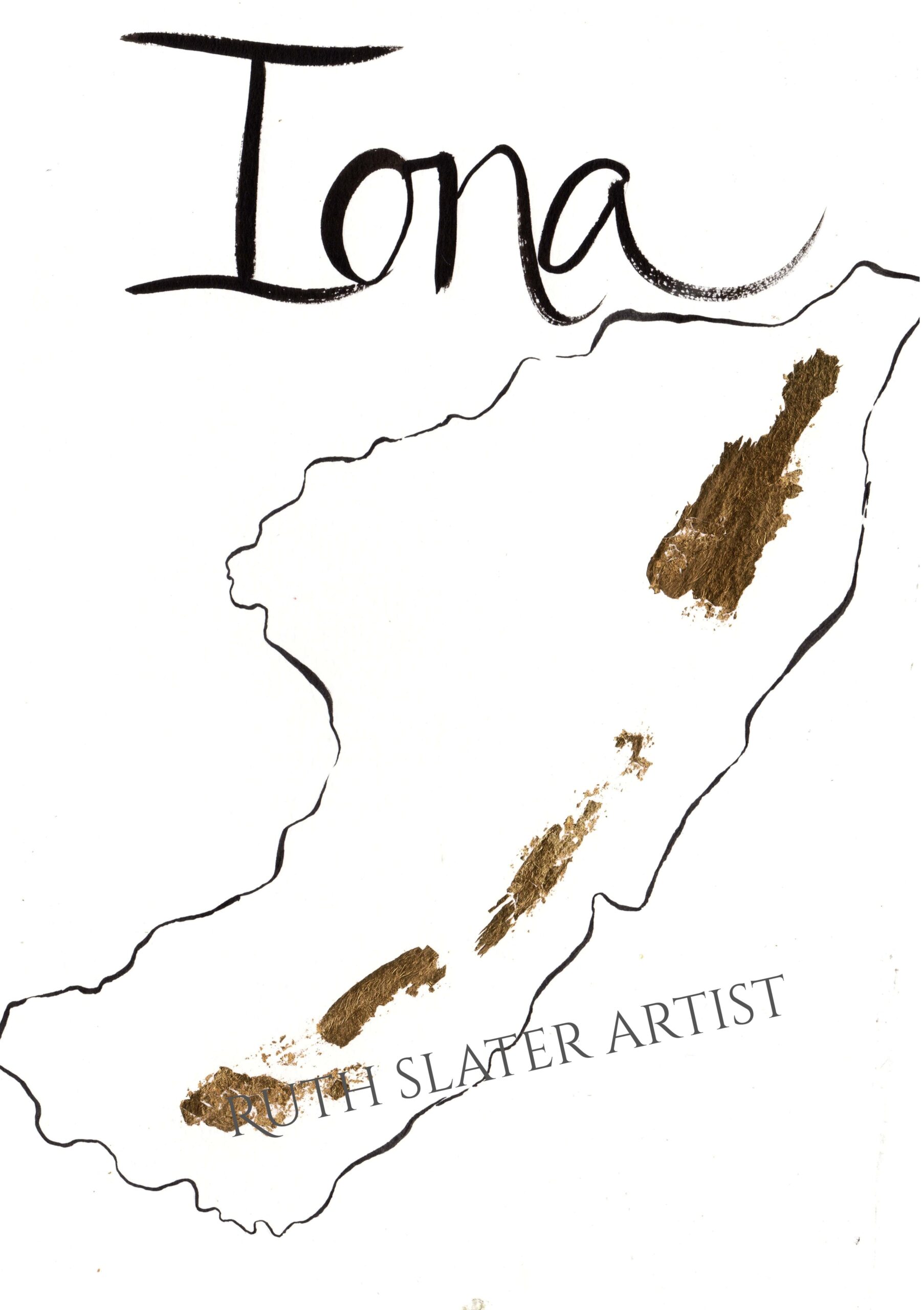 This is a hand drawn and lettered map of Iona which is embellished with real gold leaf. It is presented on 300gms cold pressed watercolour paper and comes in a cellophane sleeve. It will fit into a A4 frame and look best next to light which will catch the glow of the gold leaf.