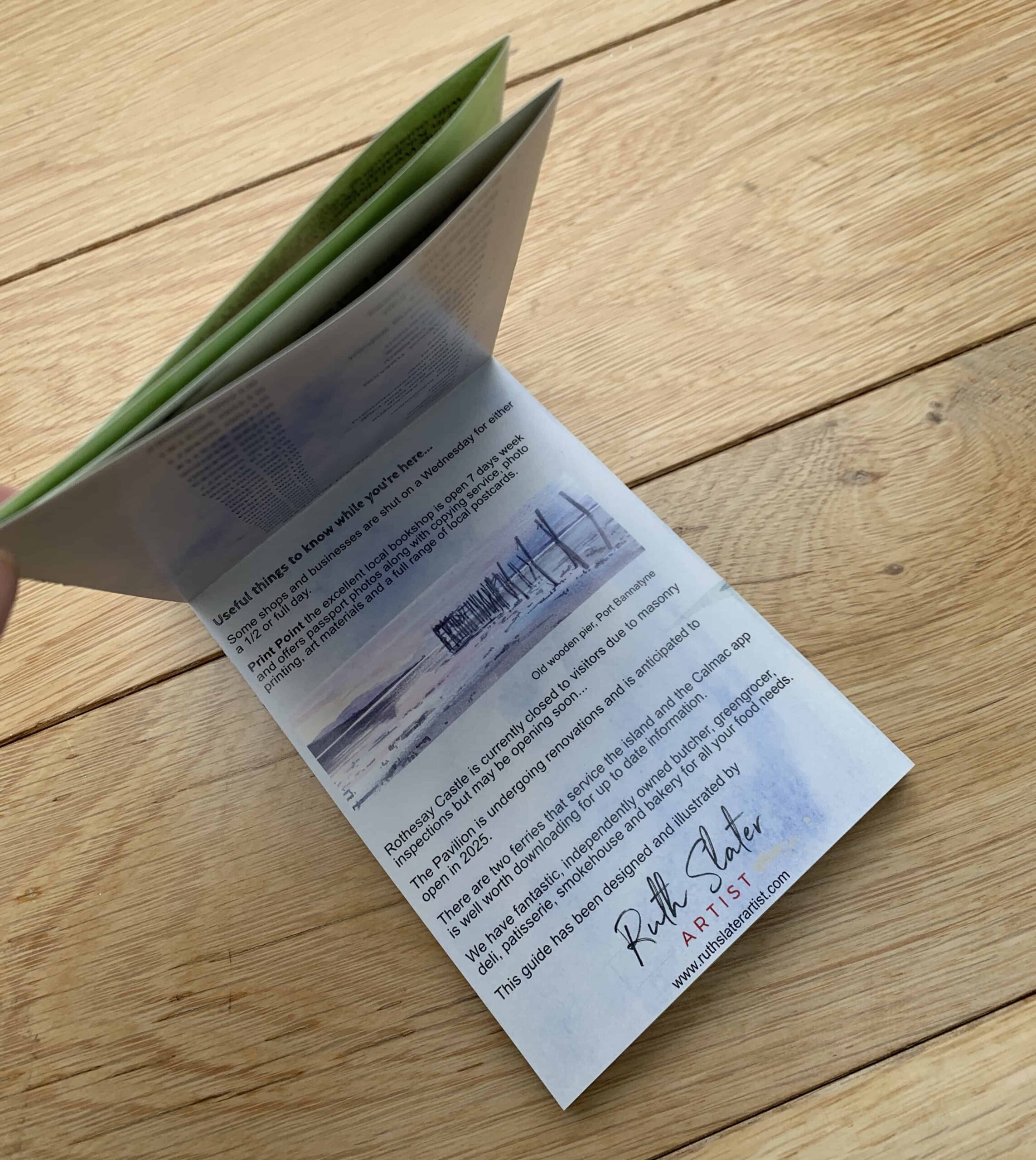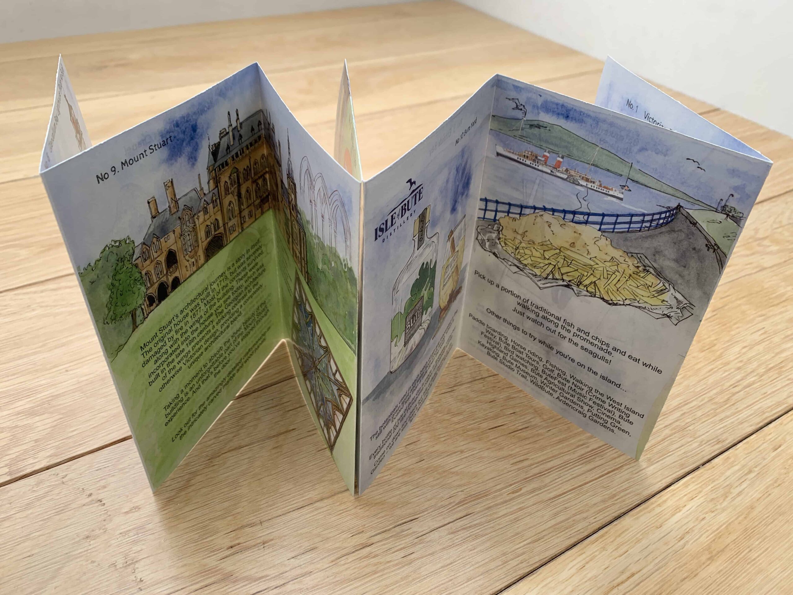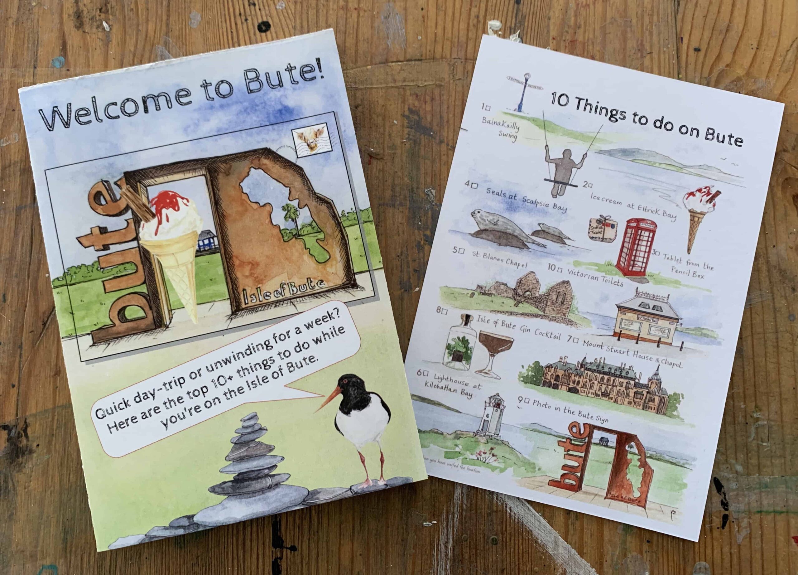This is an informative 16-page guide to the top 10+ things to do while you’re on Bute and a handy postcard with map.
